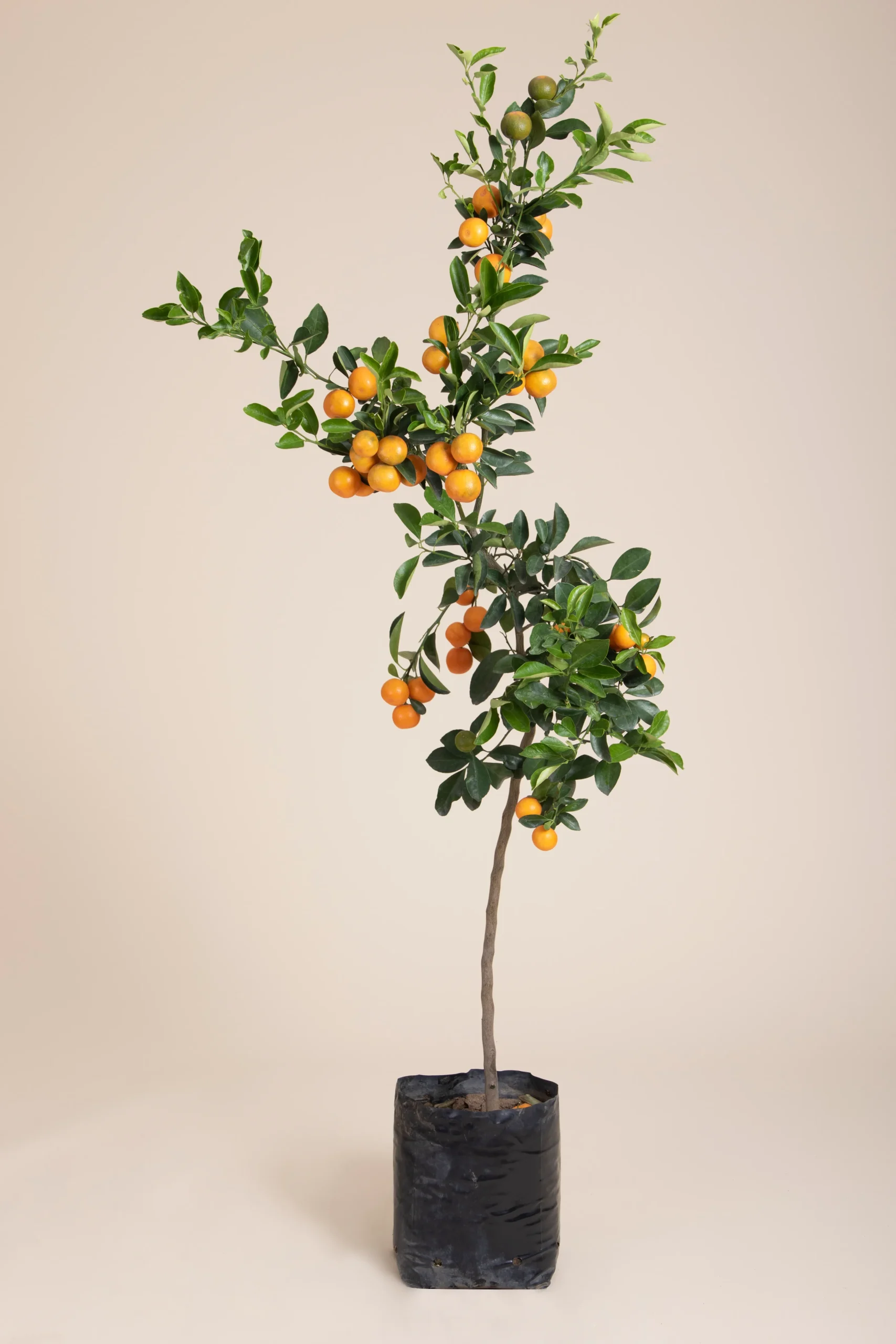 El árbol de mandarina necesita pleno sol, suelo bien drenado y riego moderado, evitando encharcamientos. Requiere fertilización rica en nitrógeno durante primavera y verano, y podas ligeras en invierno para eliminar ramas secas. Altura aproximada de 1.20 m.