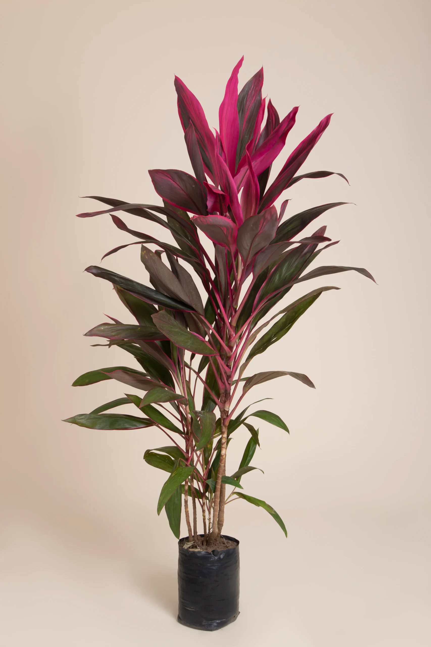La drácena marginata requiere luz indirecta brillante, riego moderado dejando secar el sustrato entre riegos, suelo bien drenado, y temperaturas cálidas (15-25 °C) evitando corrientes frías. Fertiliza en primavera-verano y limpia ocasionalmente las hojas. Evita exceso de riego para prevenir pudrición. Altura aproximada 120 cm.